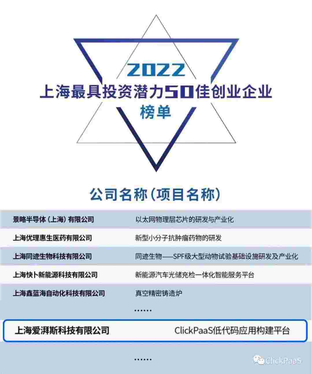 圆梦钱包 作为国内低代码PaaS平台的领军企业,,,与120家创企入围角逐。。期间接受了来自德同资本、、、领中资本等知名投资机构的10位投资人组成专家评委团的背靠背盲选。。。并最终入围“2022上海最具投资潜力50佳创业企业”榜单,,被列入“上海市重点培育创业企业库”。。