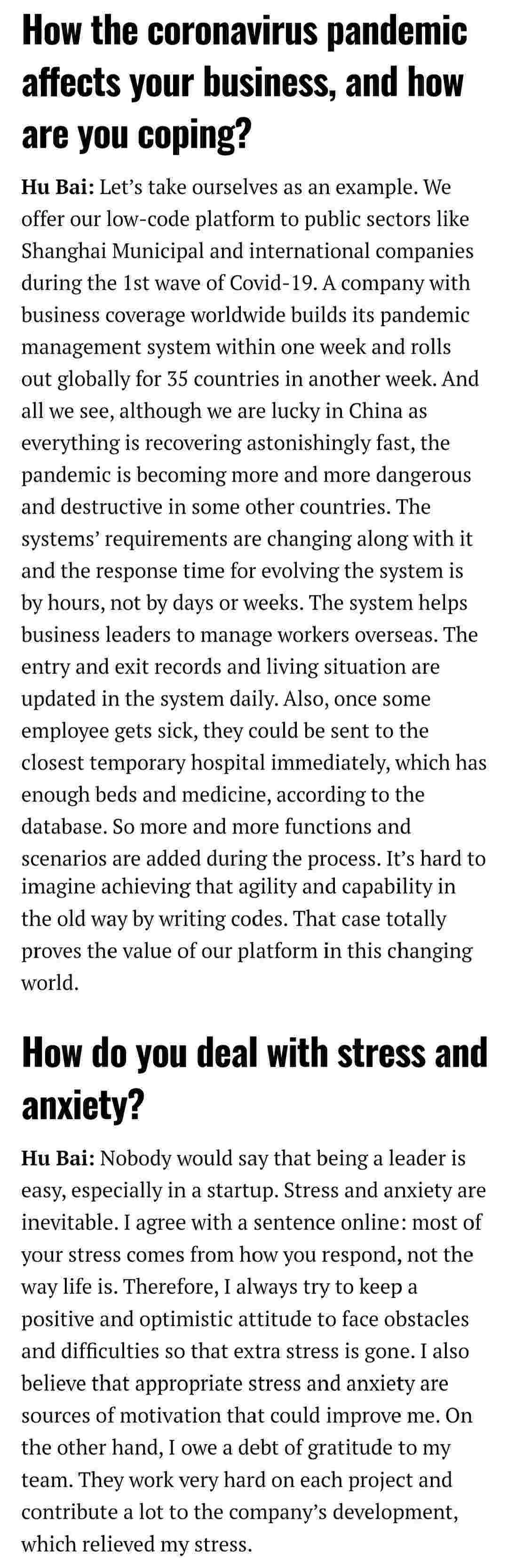 2021年年初,,,,爱湃斯科技CEO胡柏受邀接受法媒Startup.info的专访,,,与Startup info的读者分享了自己的创业经历、、以及低代码平台圆梦钱包的创新之处。。